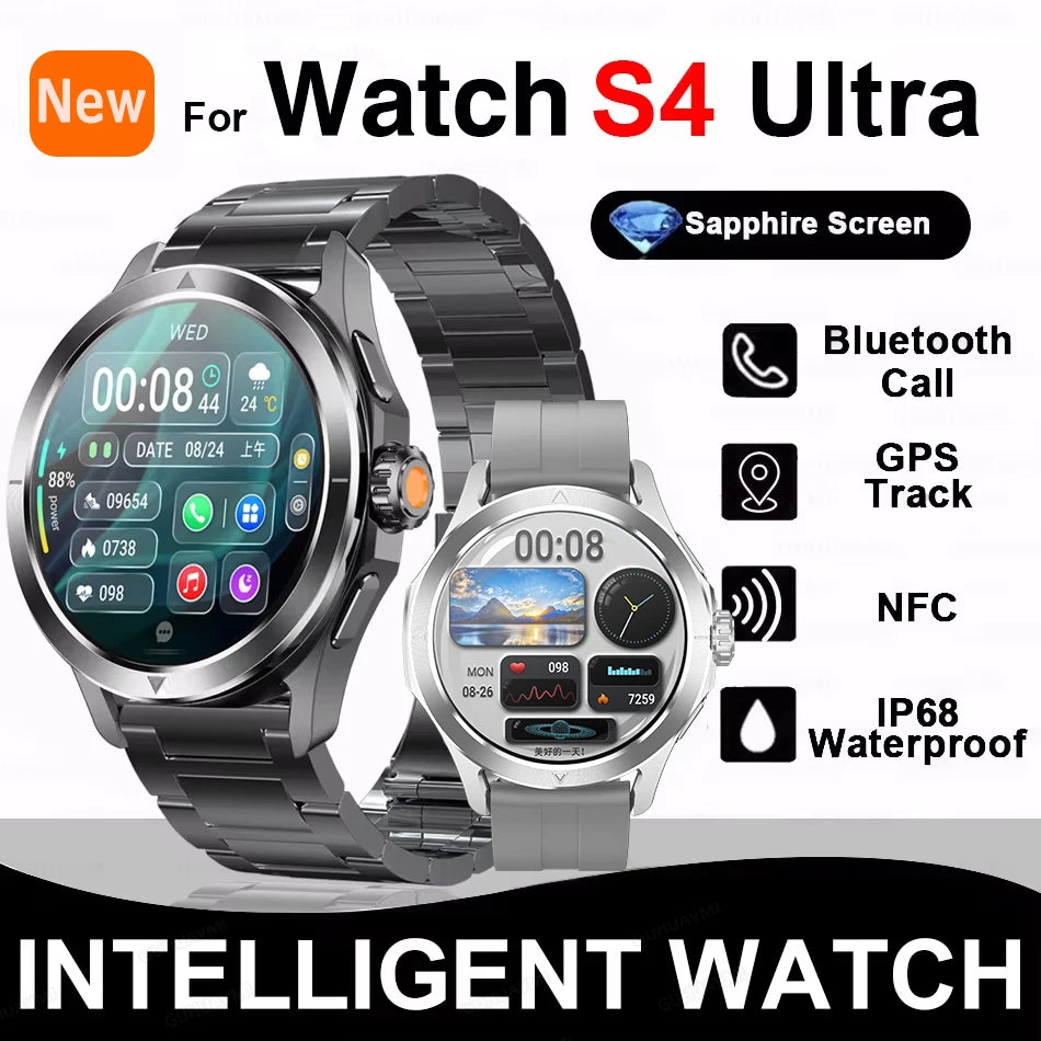 New For Xiaomi S4 Ultra Smart Watch Men AMOLED Outdoor Sports NFC GPS Compass Heart rate Waterproof Bluetooth Call Smartwatches: 2024 New Watch NFC S4 Sport Version Blood Oxygen Heart rate Compass Waterproof Smart Watch GPS Tracking Smartwatch Men Women